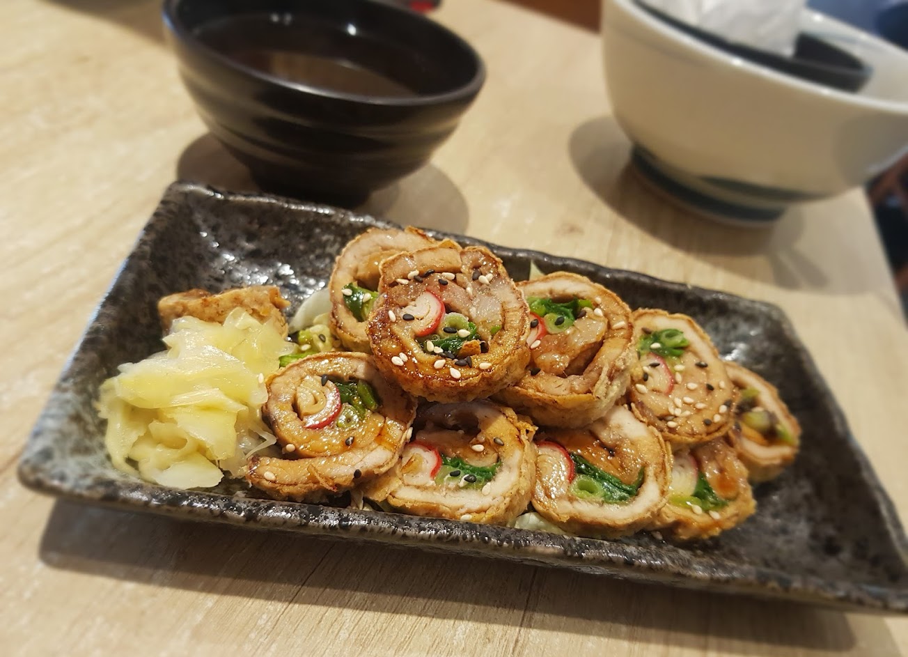 炸蔥肉捲80元(配上旁邊的醃漬薑片很加分)