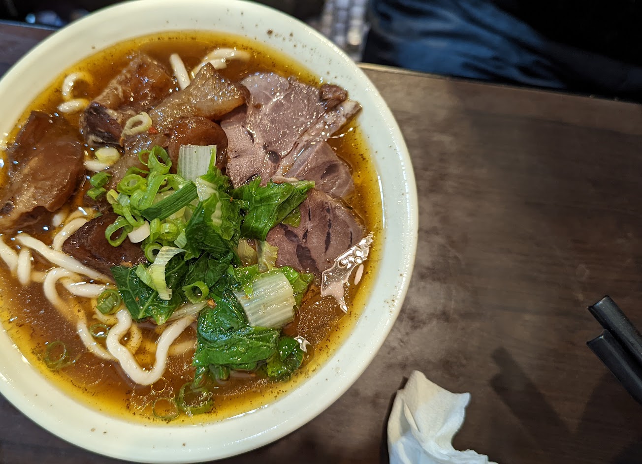 The food, the hand cut noodles, outstanding. The broth and beef was fantastic.