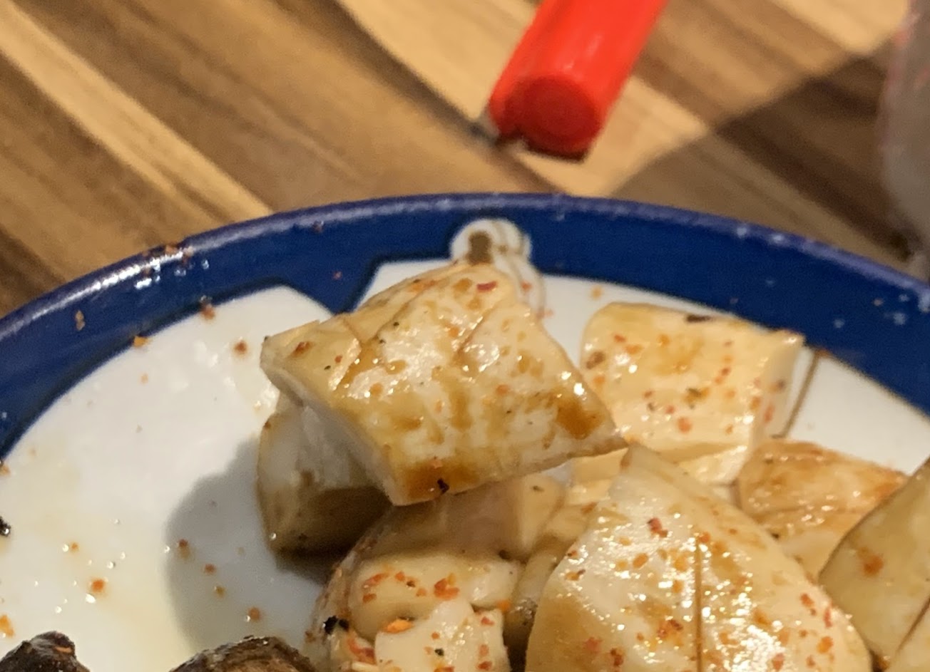 我們上桌要半個小時才上烤物 烤雞心+七里香(七里香2顆$40!)