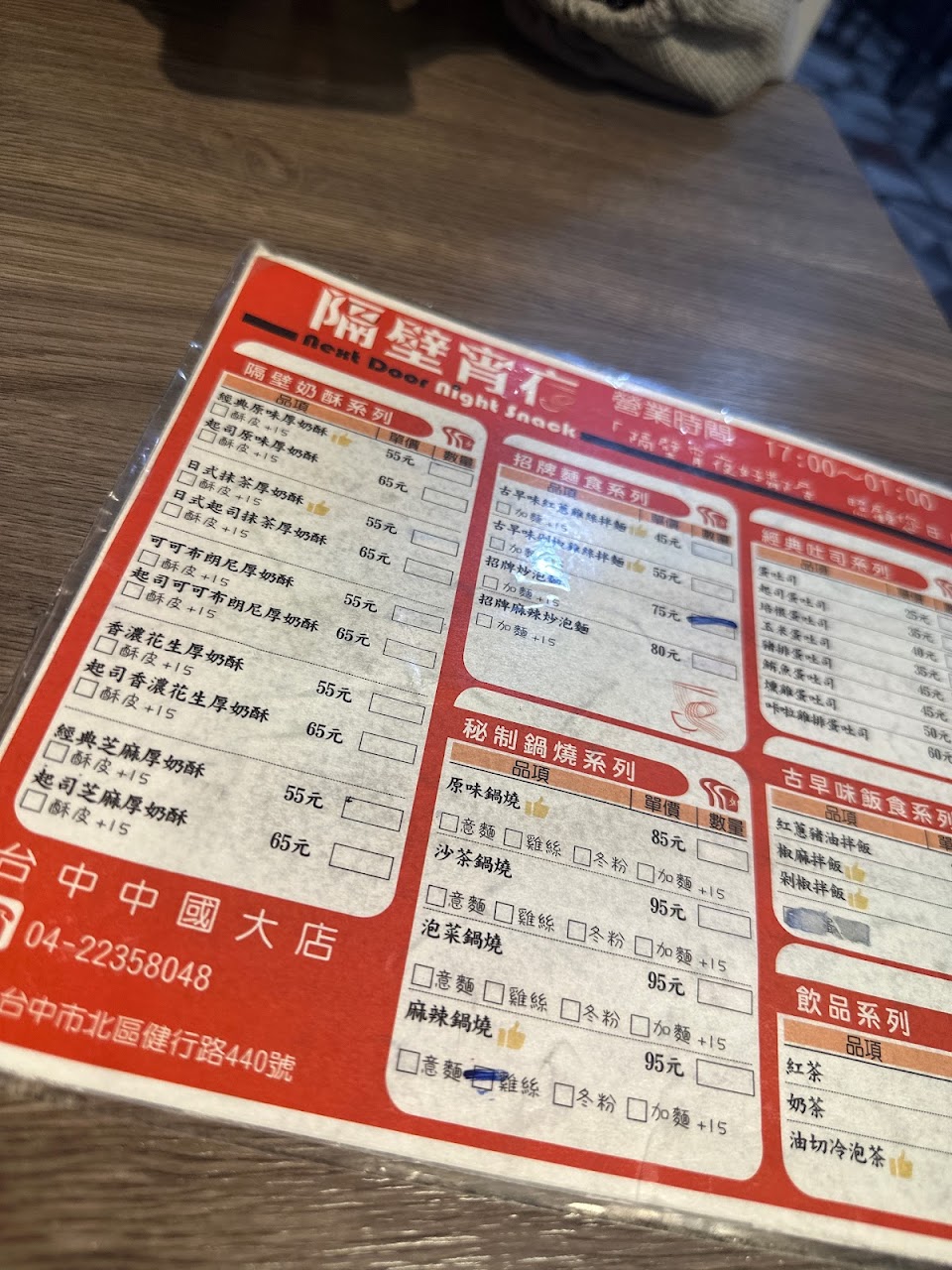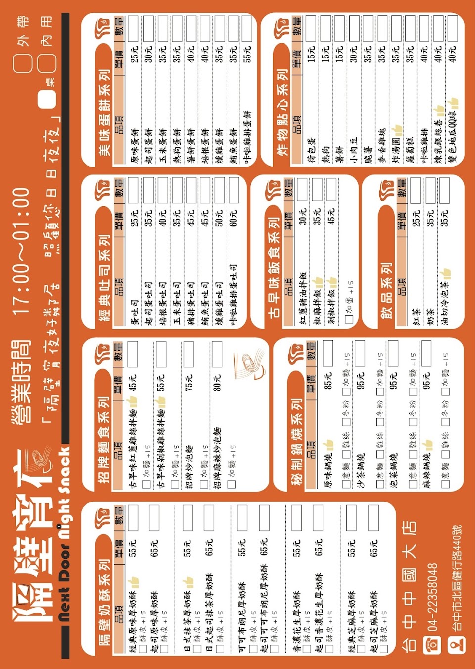 2024最新在地推薦餐廳的菜單_隔壁宵夜中國醫大店 台中美食|宵夜|晚餐|台中宵夜|宵夜首選|人氣美食|炒泡麵|鍋燒麵|厚奶酥厚片|炸物|小點心的菜單、圖片