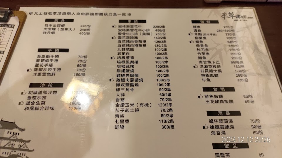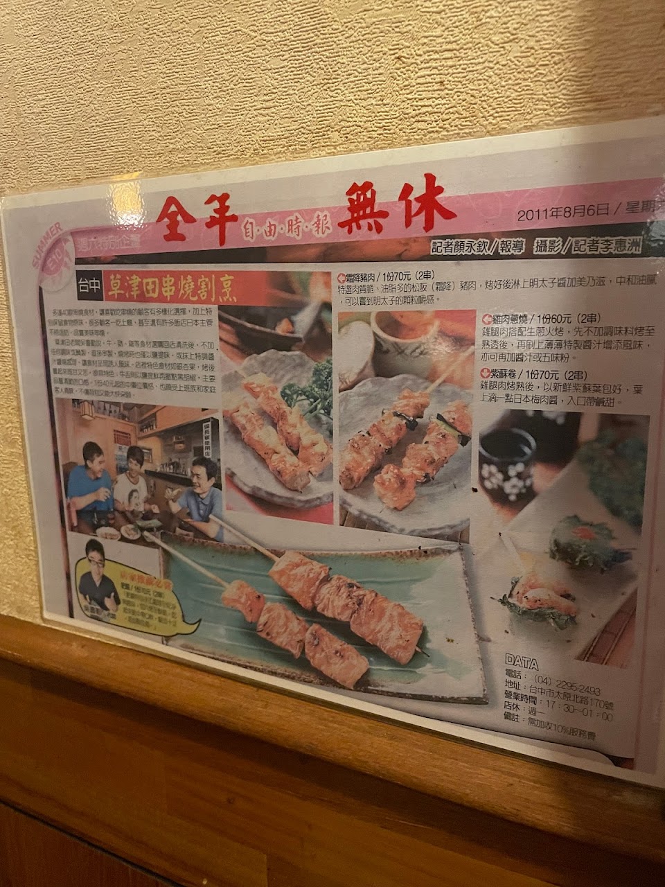 2024最新在地推薦餐廳的菜單_台中草津田居酒屋/日式串燒的菜單、圖片