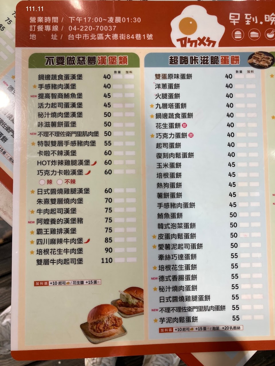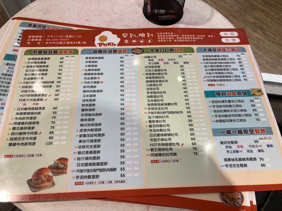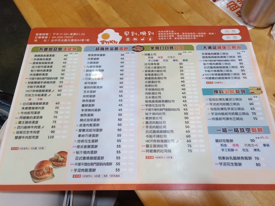 2024最新在地推薦餐廳的菜單_早到晚到台中健行店的菜單、圖片