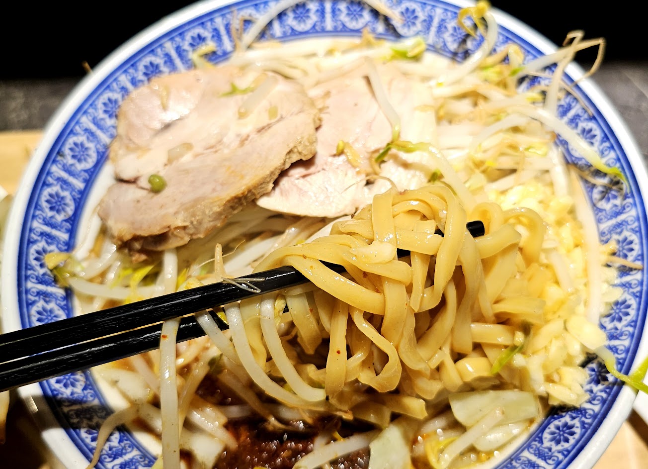 首訪選擇中吞山,搭配60g蒜頭與400g豆芽菜,150g麵體口感較像台式麵條,但嚼勁較高,兩塊叉燒肉肥瘦剛剛好,因為是第一組客人幾乎無等待時間,湯溫亦合適,上桌後按照指引夾起全部豆芽菜到小碗中,再使用天地返拌勻麵體,吃到一半的確會有油膩感,這時候再徐徐加入豆芽菜,竟然有氣味層次分明的感覺。