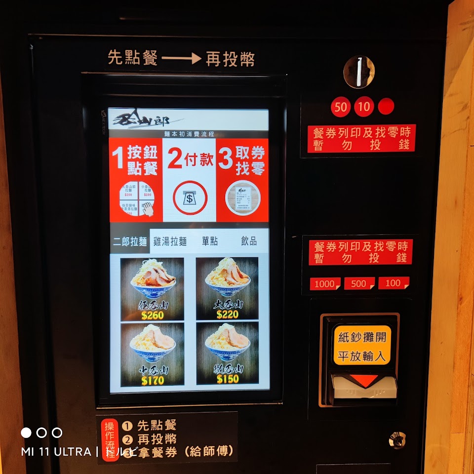 屬貍匠系列的拉麵,店門口不好停車,因鄰近一中所以要花點時間找車位。使用店門口的機台點餐之後,依號入座。