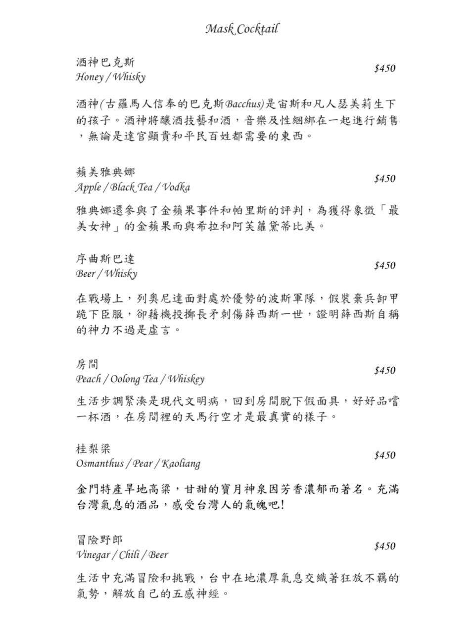 2024最新在地推薦餐廳的菜單_MASK Bistro的菜單、圖片