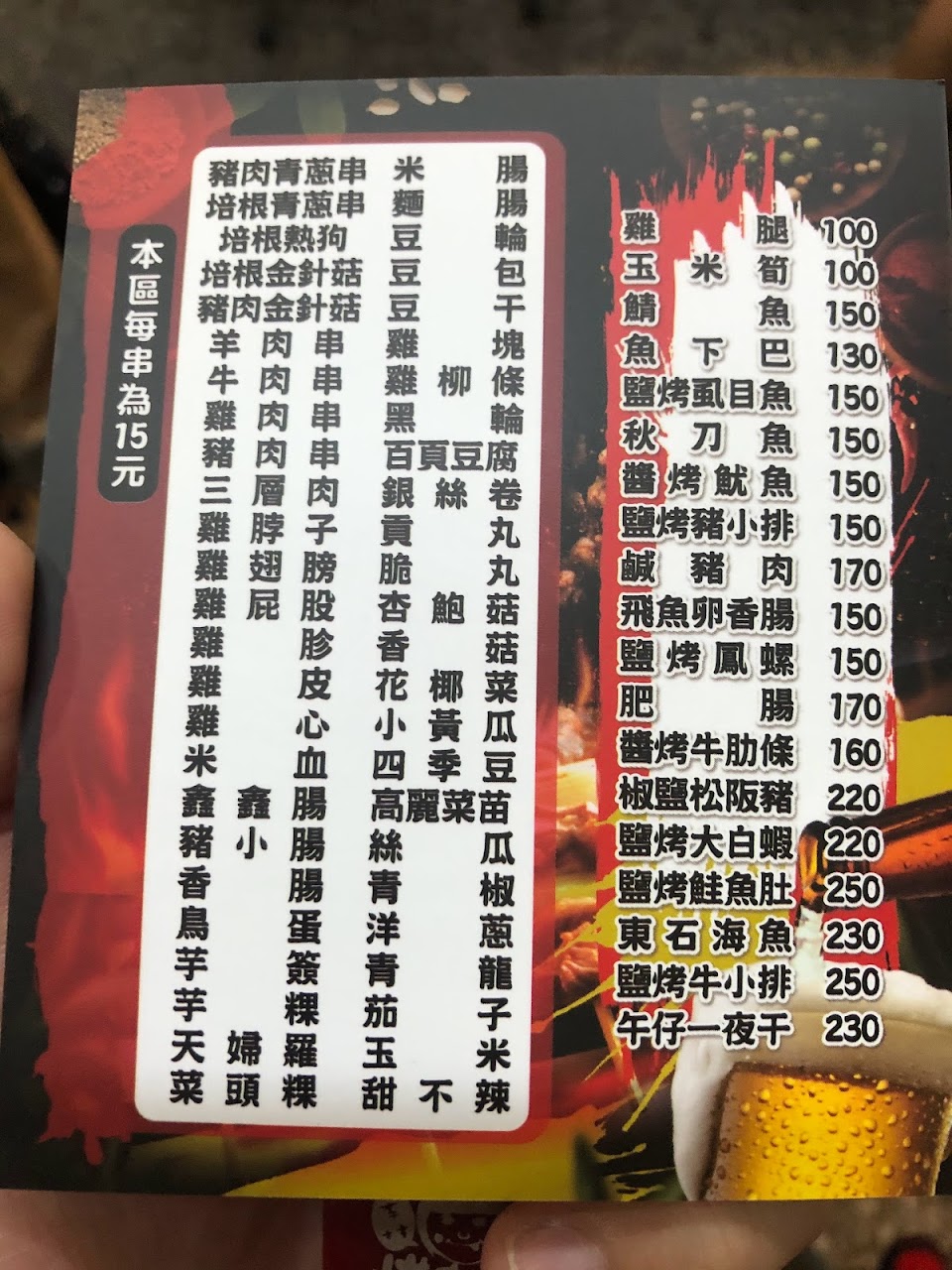 一串17元,烤肉醬的味道很好吃,可以打電話先訂,不然現場要等較久。
