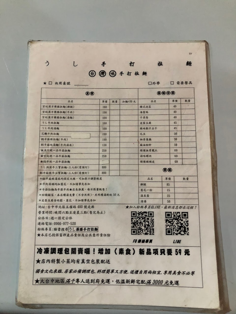 2024最新在地推薦餐廳的菜單_うし手打拉麵的菜單、圖片