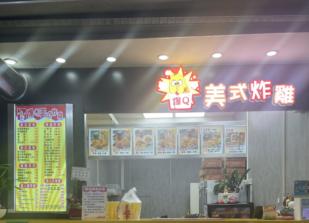 今天週末想吃炸雞,剛好家附近有一間美式炸雞聽朋友說很厲害就去買看看囉!7塊雞全家餐(雞腿2、雞翅2、雞塊3),原本售價是269元但是去買的時候店家說他們漲價了變成299元。我說網路google上你們沒有漲價公告啊!後來店家才算269元,不過是真的爆汁好吃,不過以前有拋棄式的手套漲價後好像也沒了