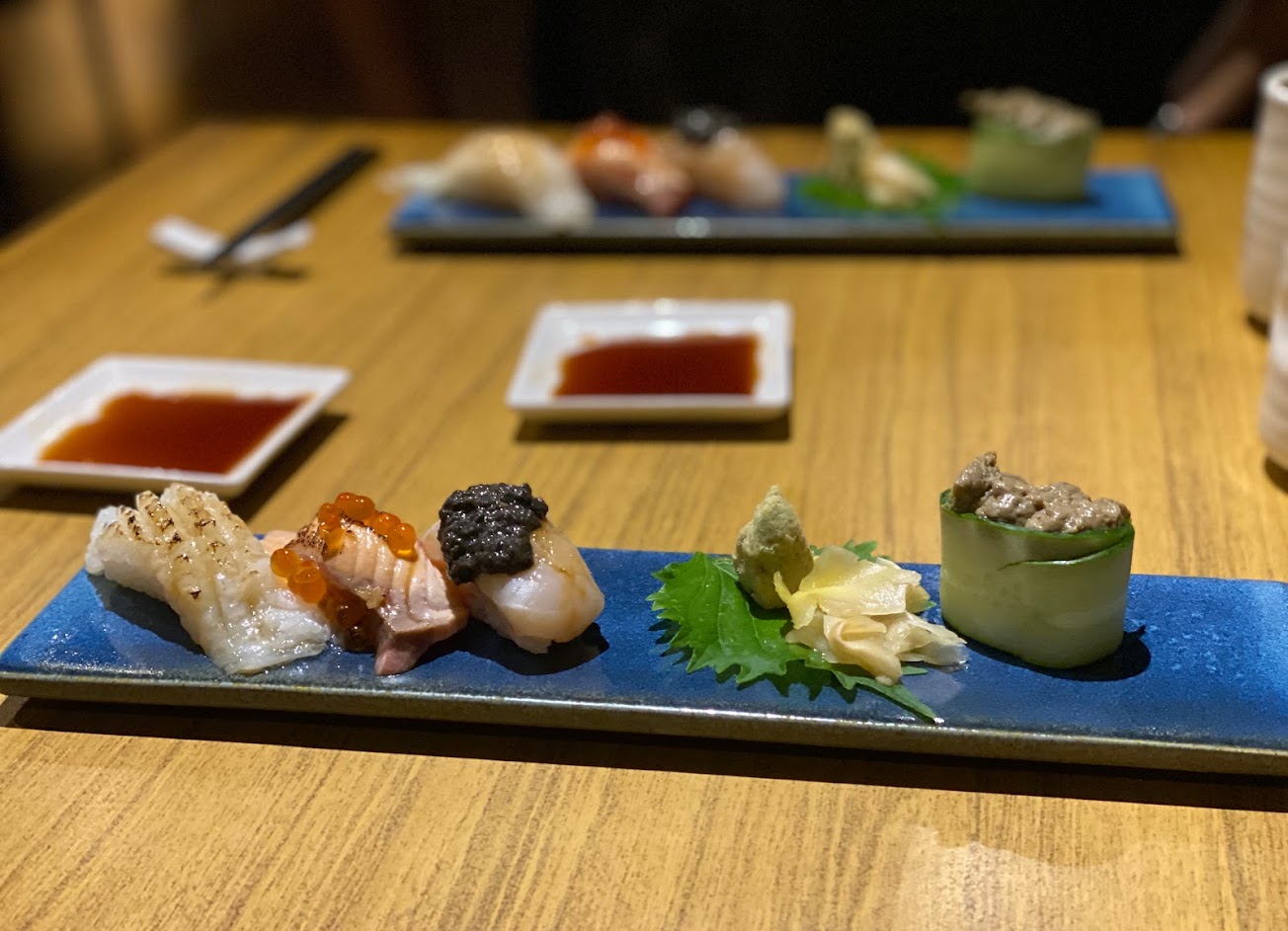 2. 現在只是疫情趨緩,並不是解除,不管服務生還是吧檯師傅都沒配戴口罩,服務生送餐介紹的時候有提醒要配戴口罩,但後續送餐依然沒口罩在介紹菜品