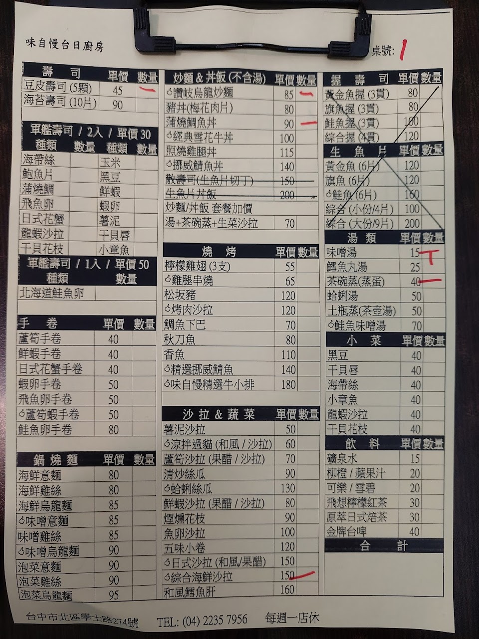 2024最新在地推薦餐廳的菜單_味自慢台日廚房(生魚片暫停供應)的菜單、圖片