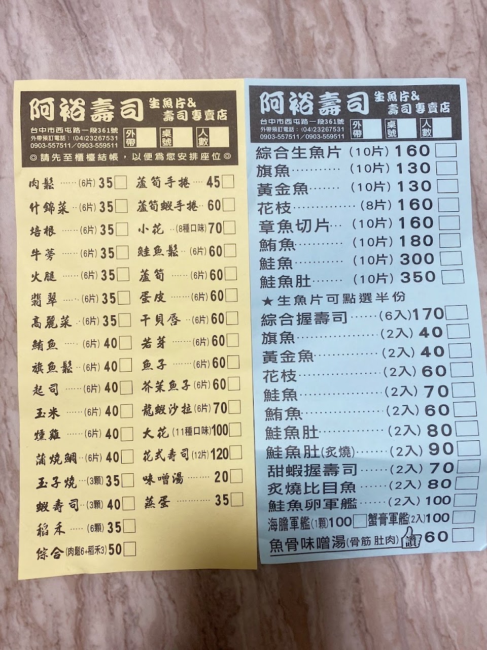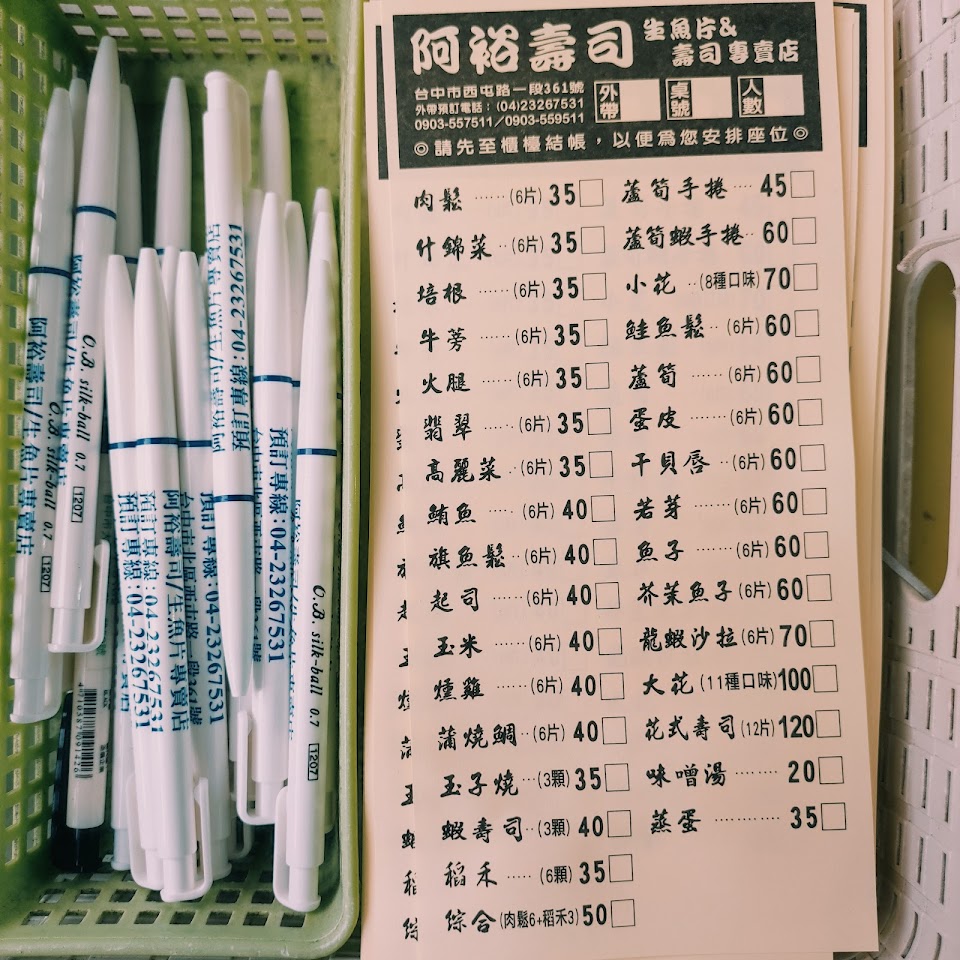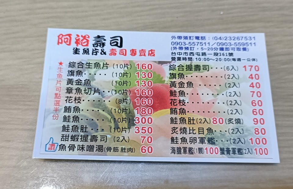 2024最新在地推薦餐廳的菜單_阿裕壽司的菜單、圖片
