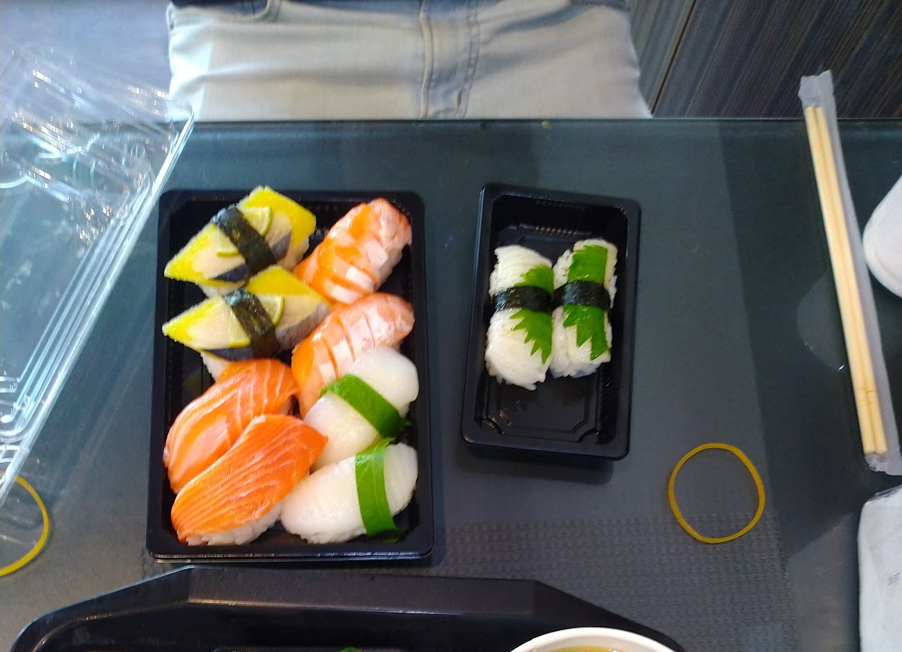雖然分裝的很好,但買沒幾樣真的分裝太多塑膠袋了。這是我第一次去買,壽司一咬就散(真的很懷疑是隨便包),還有吃到一個壽司裡面居然有包一大坨芥末,嗆到吞下去也不是吐出來也不是,又不是握壽司跟生魚片,加什麼芥末! …
