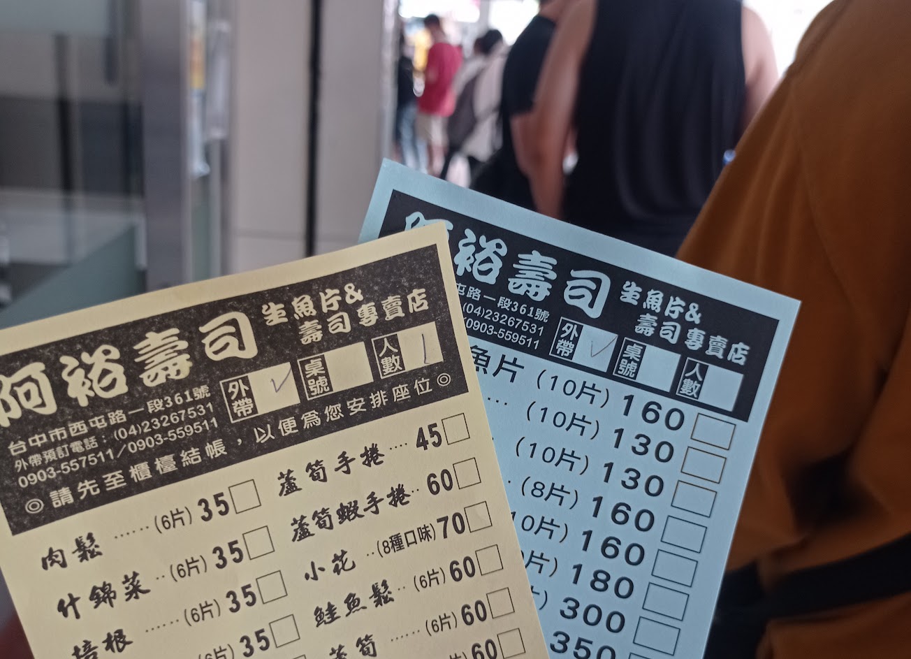 台式壽司,優點是菜單寫得蠻清楚明確的,稱不上美味,經過沒人的話可以吃,不用特地來排隊