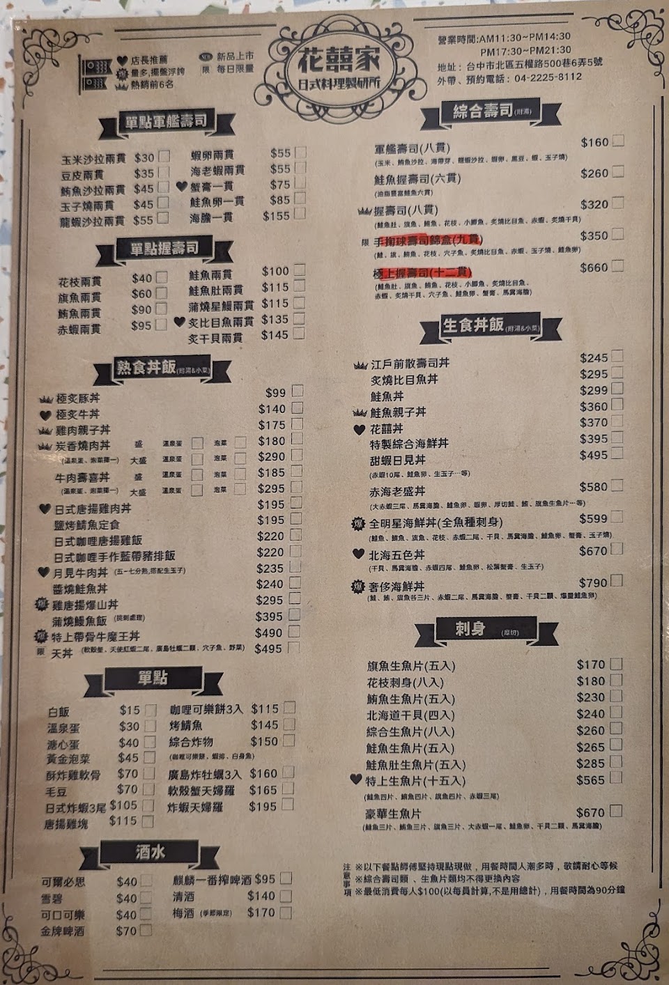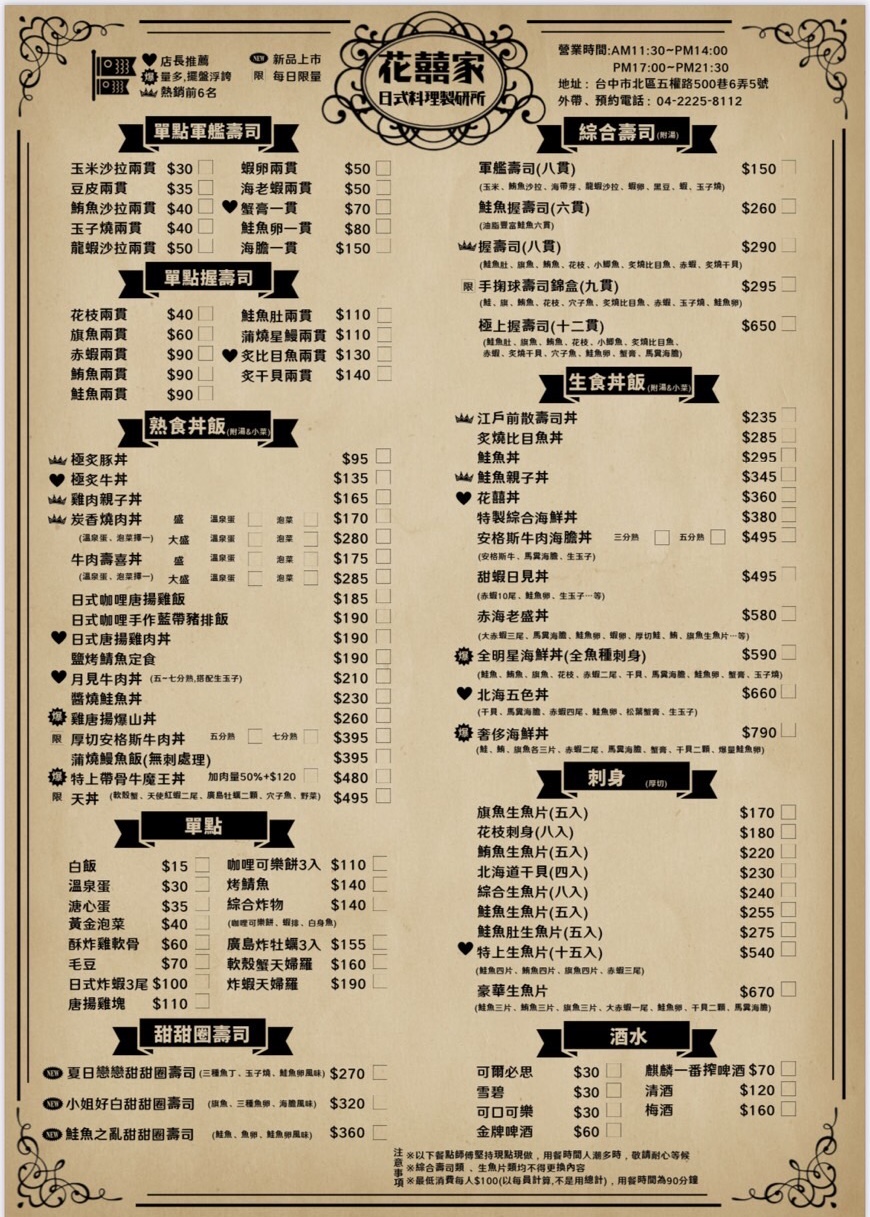 2024最新在地推薦餐廳的菜單_花囍家日式料理製研所(一中店)的菜單、圖片