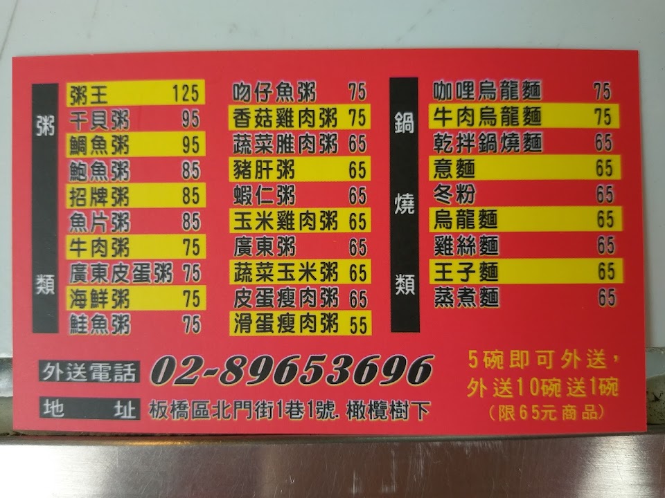 太太身體不舒服想吃粥,下班途中先致電預訂,免等待立刻取餐,很方便。最大的重點是太太說好吃!(香菇雞肉粥)