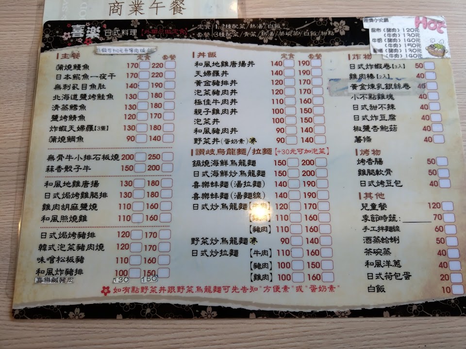 2024最新在地推薦餐廳的菜單_喜樂日式料理的菜單、圖片