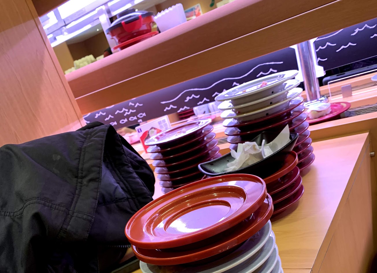 建議可以先下載app 取號或訂位 可節省等候時間 用app取號 到店後要先在櫃檯電腦執行預約報到 之後會開始安排位置 給一個座位牌 告知座位位置 也會有人員帶位 用餐時間60分鐘 小碟子 濕紙巾 大湯匙 杯子 在最上方 乾紙巾和小湯匙在中間部位 醬料 薑片 茶粉在桌面 除了醬油 也有甜醬和橙醋 芥末在轉台上 餐點可以直接轉台上取用 也可以平板點 平板點的會由上方轉台送達 並有警示音 轉台餐點足 其實可以直接轉台取用 因為平板點的 個人感覺主餐大小會有一點點差異 視覺上都覺得轉台的蝦子比較大 魚片比較厚 食材新鮮 米飯捏的剛好 芥末嗆辣好吃 用餐期間 也會有服務員端今日特製壽司 詢問要不要點用 用餐時間快到時 服務員也會過來詢問 並告知時間要到了 結帳在平板上點選結帳 服務員會來桌邊用特製的尺量盤數 並再次和你確認 之後拿著入座的座位牌到櫃檯結帳即可 洗手間在外面 面對壽司郎右邊的小巷子進去左轉 可便利在外面等候用餐者