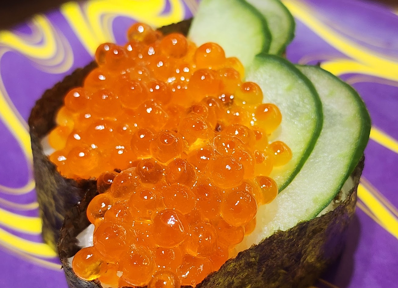 印象深刻的是蟹膏軍艦滿滿的蟹膏,鮭魚壽司跟同是旋轉壽司店家比,也是略高一籌。