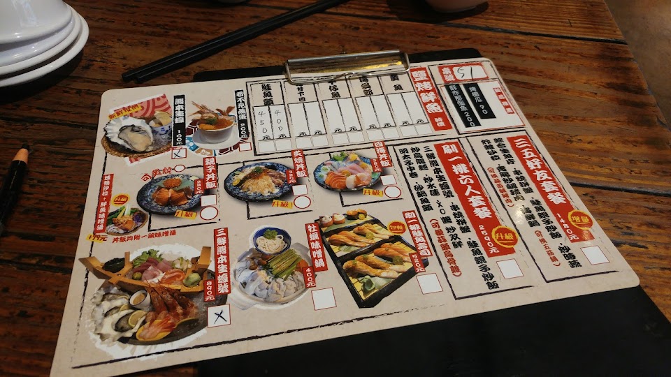 蚵仔酥, 綜合生魚片, 烤豬小排, 茶碗蒸