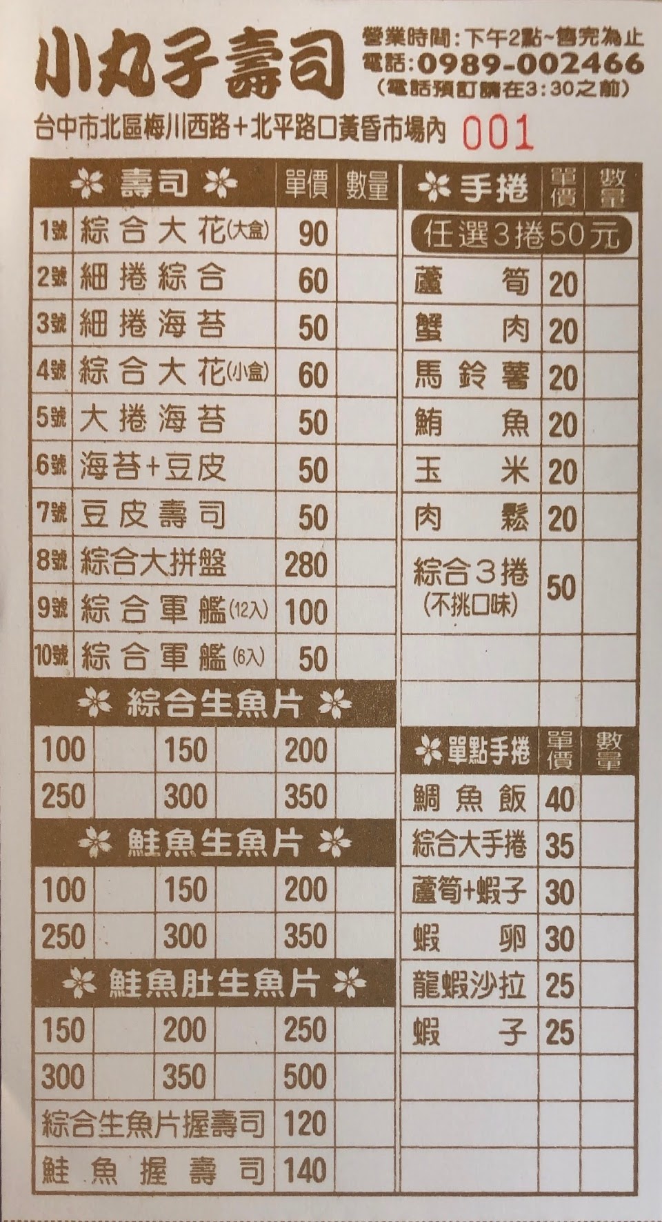 2024最新在地推薦餐廳的菜單_小丸子壽司的菜單、圖片