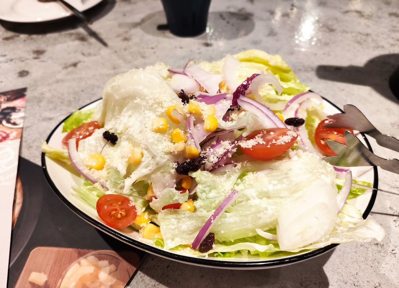 朋友生日聚餐,麵類燉飯套餐315起,主餐看起來份量不多,但搭配沙拉+薯條+飲料+可不斷續壺的雞湯⋯吃完還滿撐的!麵類吸附湯汁還蠻夠味的,薯條冷掉也還不錯吃! 另有披薩跟鍋類⋯⋯結果大家還是偏愛麵類跟燉飯!飲料為綠茶,紅茶,蜜茶⋯因為用外帶杯裝所以沒拍。
