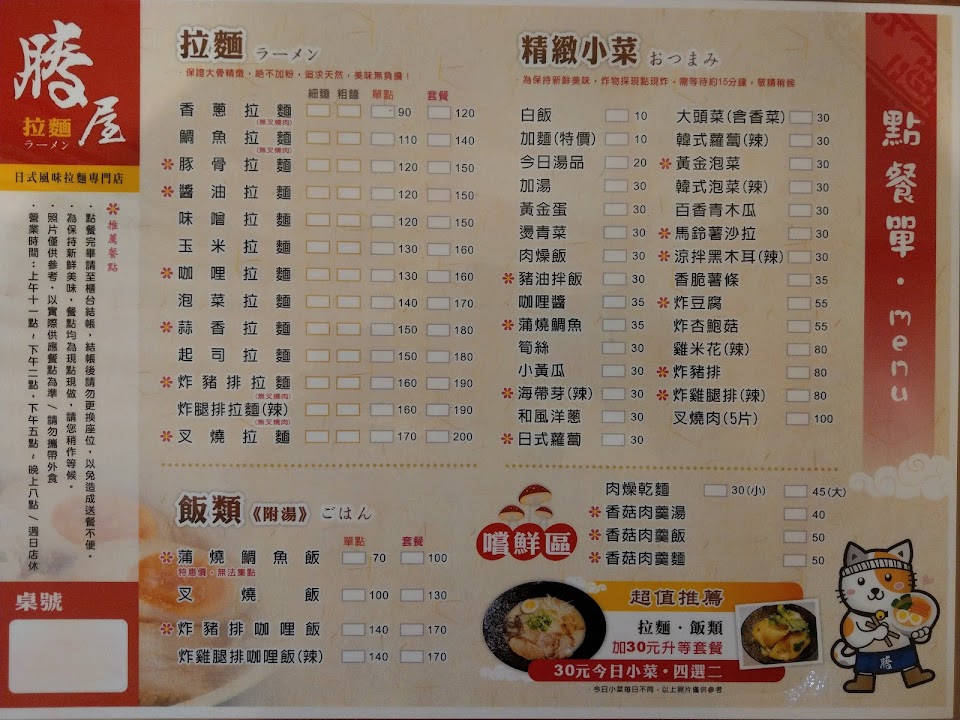 2024最新在地推薦餐廳的菜單_謄屋拉麵的菜單、圖片