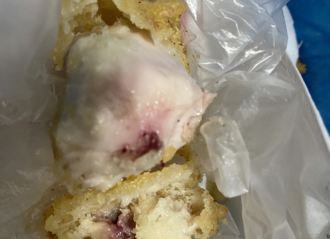 我買軟殼蟹套餐加炸蝦,帶回家吃有腥臭味而且又軟掉了,可能是天熱才會這樣…(建議要現場吃,不要帶回家吃)