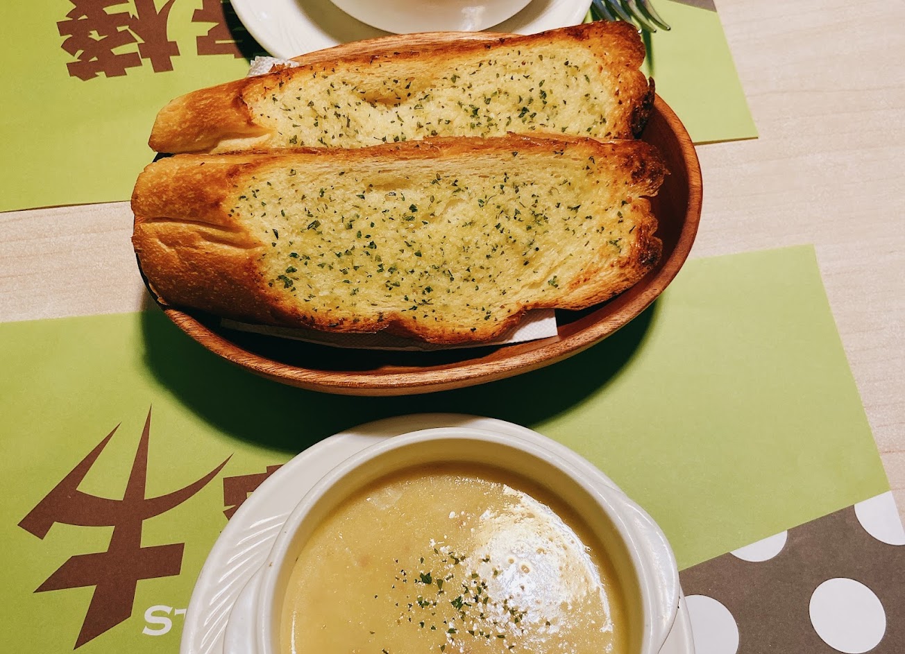 食物的美味程度和cp值有4顆星以上,強烈建議一定要加套餐,因為香蒜麵包真的非常優秀!