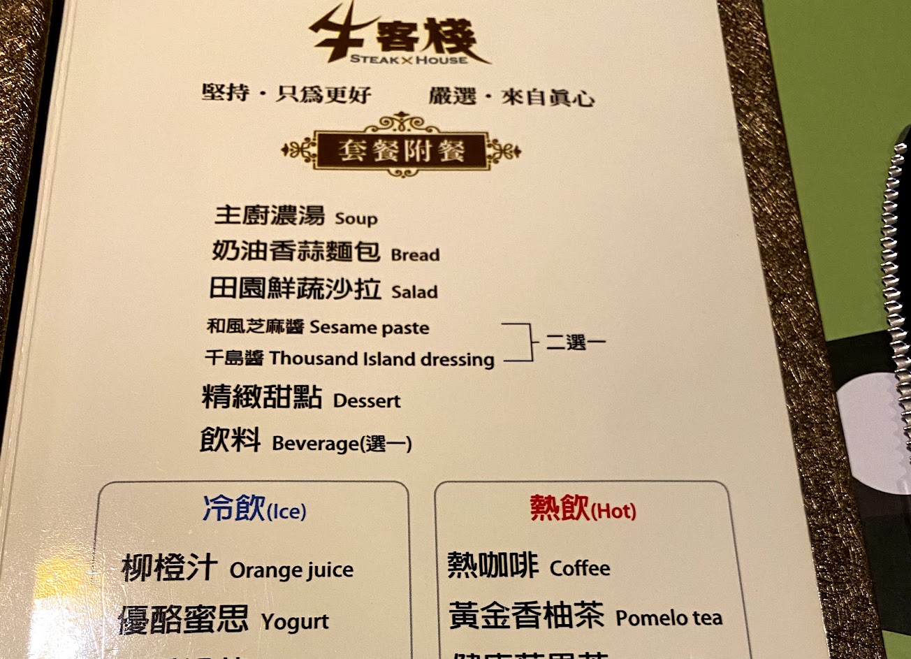 今晚全家人到科博館對面的「牛客棧」享用排餐,這裡走溫馨且平價路線,不用服務費但服務相當周到,無論牛排、麵包、濃湯、飲料、甜點都具有一定水準,適合小家庭和學生聚會。