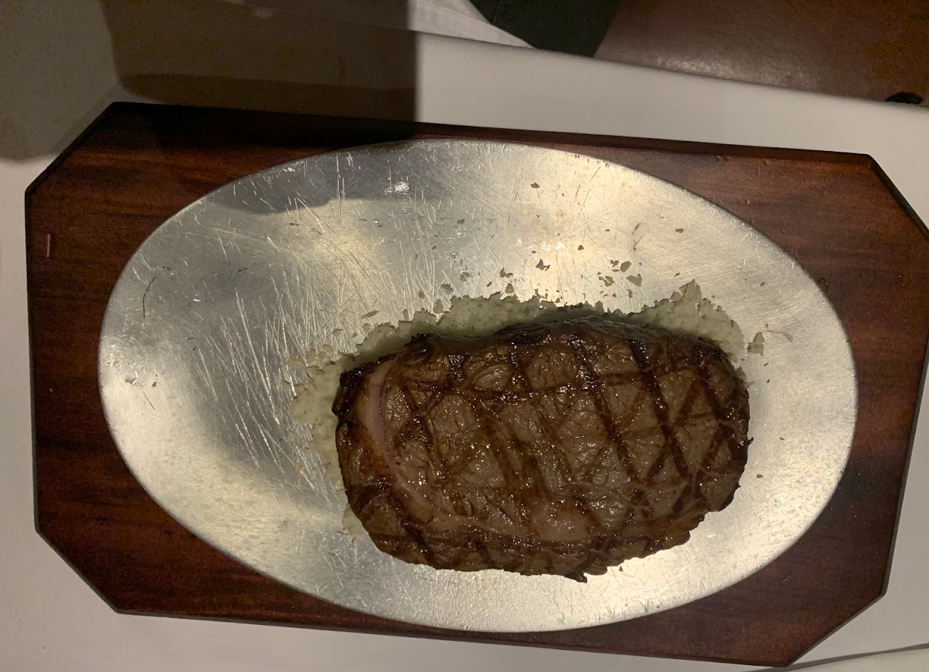 蒜味十足的牛排,會用大量蒜頭在鐵盤上拌炒再放上牛肉,因此牛排會有濃濃的蒜味,不太能嚐到牛排的風味。鐵盤溫度非常高,會一直加熱牛排,因此,吃不到一半,牛排會由三分變五分到七分熟。套餐的甜點提拉米蘇擺盤別有新意,但,完全沒有Mascarpone cheese的味道,很不提拉米蘇。店內氣氛好,服務不錯。
