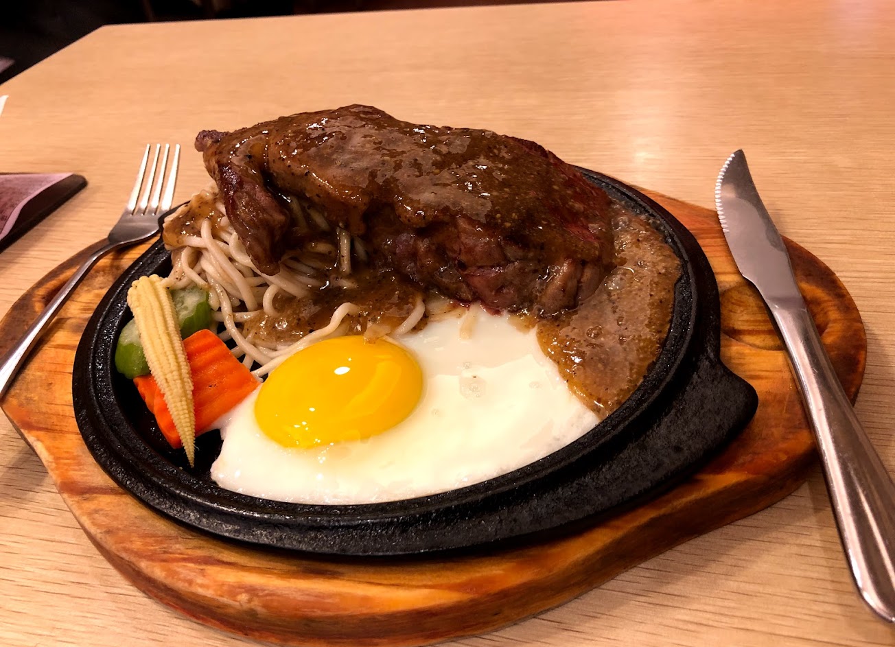 七分沙朗肉質軟嫩,鐵板麵份量充足。