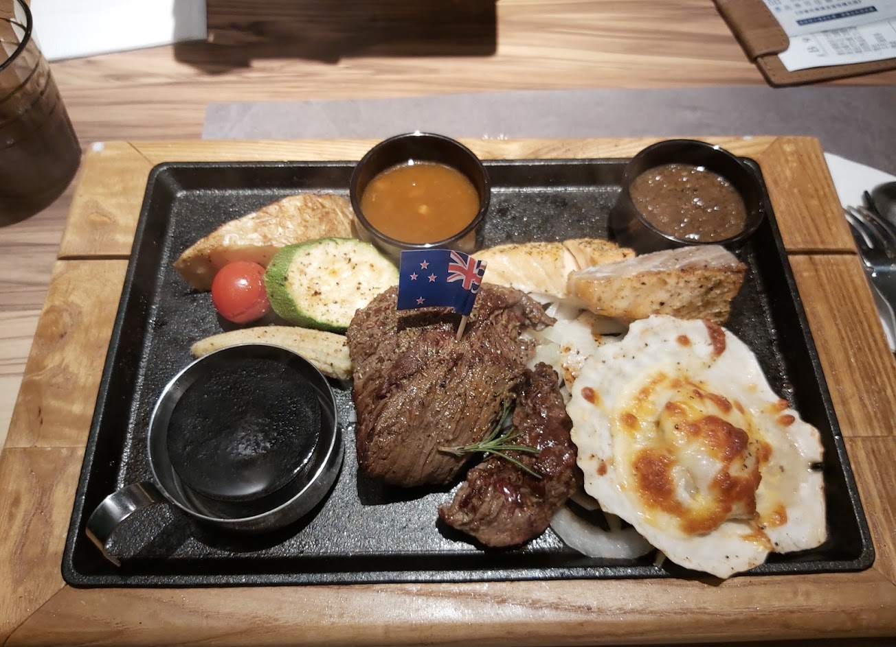 牛肉好吃,五分熟的牛排略生,還好有附一顆會燙的石頭,可以自己加熱,也別有樂趣!google評論五顆星還送一盤雞塊