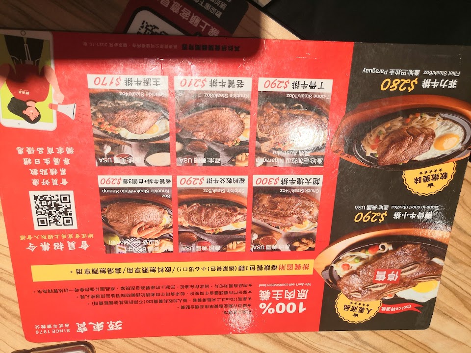 今天晚上點了一份沙朗牛排再加3顆干貝,整塊沙朗牛排,點餐時說要7分熟,結果來了根本5分熟,還有筋的部份幾乎佔了一半、咬也咬不斷也咬不爛,也麻煩處理一下!,重點上餐時不知道是再趕餐點還是怎樣,整顆蛋和鐵版那層還沒翻面都燒焦了,瞬間整份排餐多了一份風味,再麻煩內場師傅們注意一下,再改進一下,辛苦了!