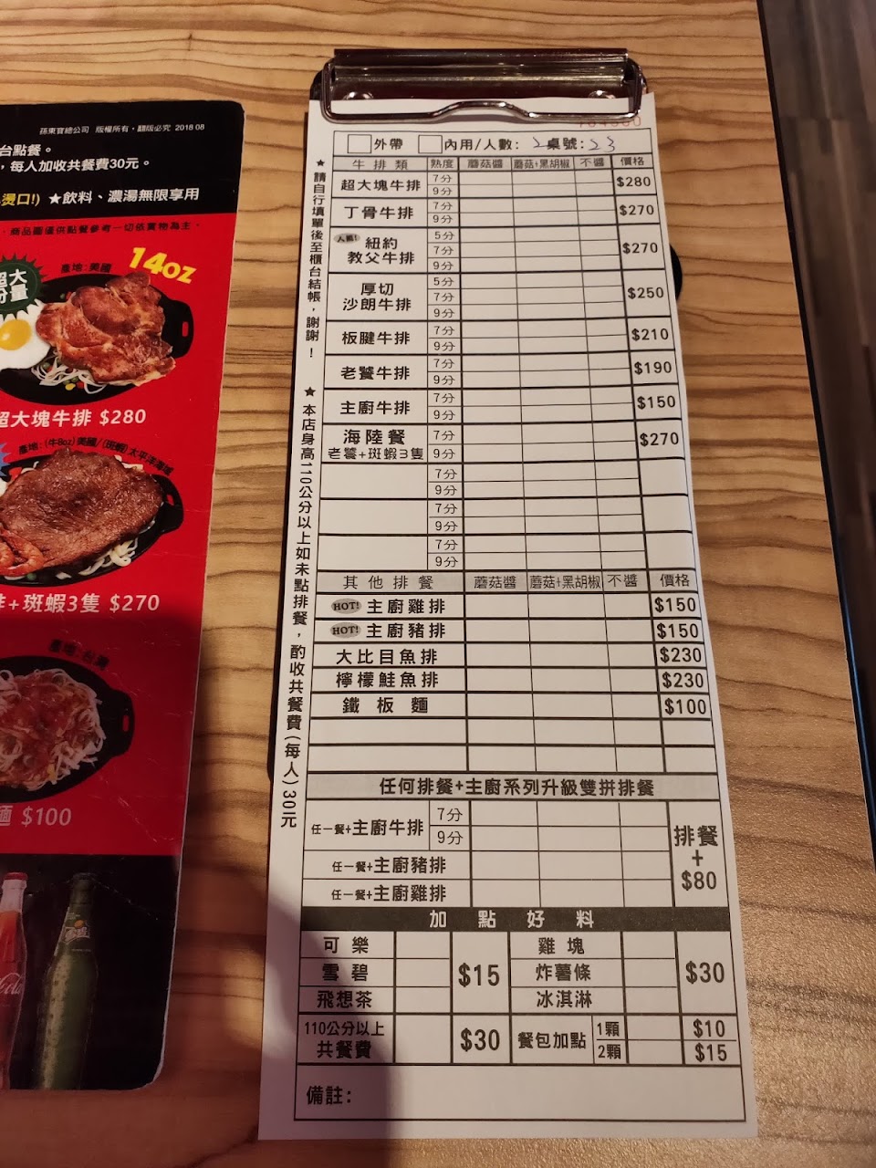 店家規定身高超過110公分未點排餐需收50元(不能抵消費),能抵會消費比較合理,因免費供應的只有湯跟飲料,沒有其他品項,此規定相較於其他平價牛排來說太苛刻;既然設這樣的規定想必也不在乎客人感受(要多收50不如吃別間)。