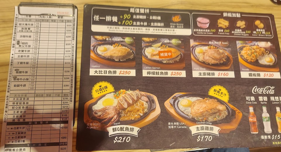 地板黏黏的,餐點煎超級硬,鐵板麵超級糊而且上來就已經焦了,雖然份量大,但真的是沒辦法吃完,就…以上供參