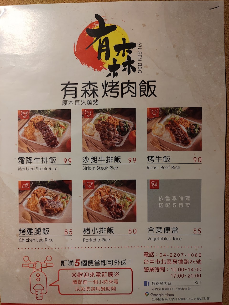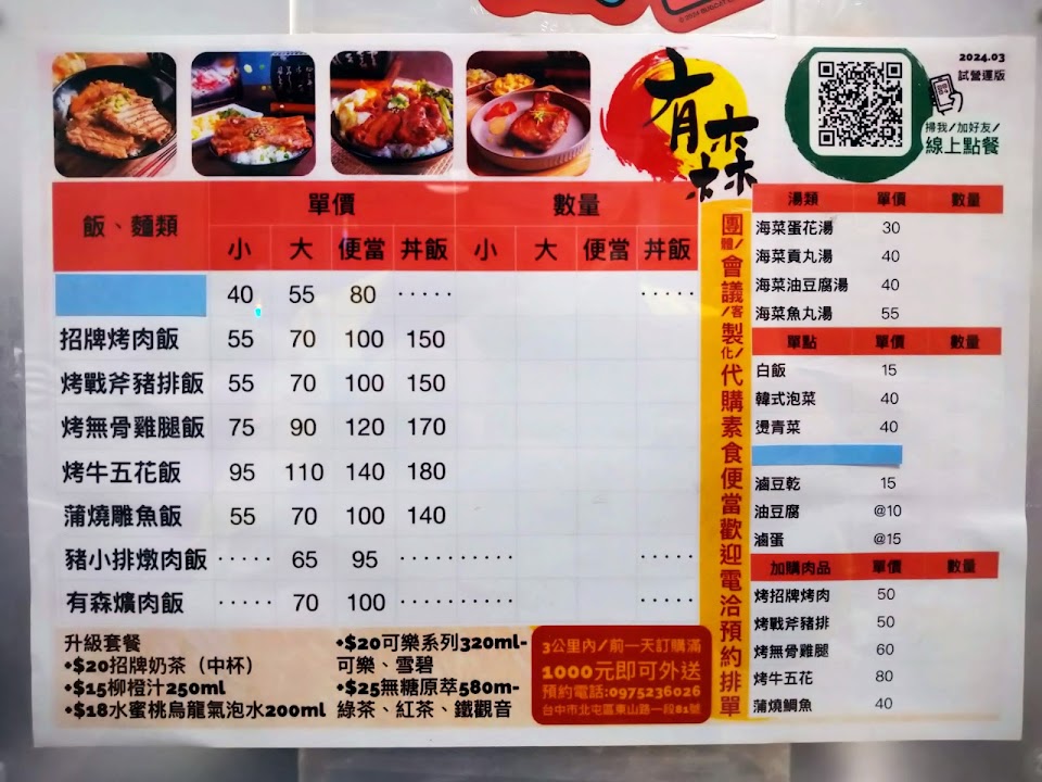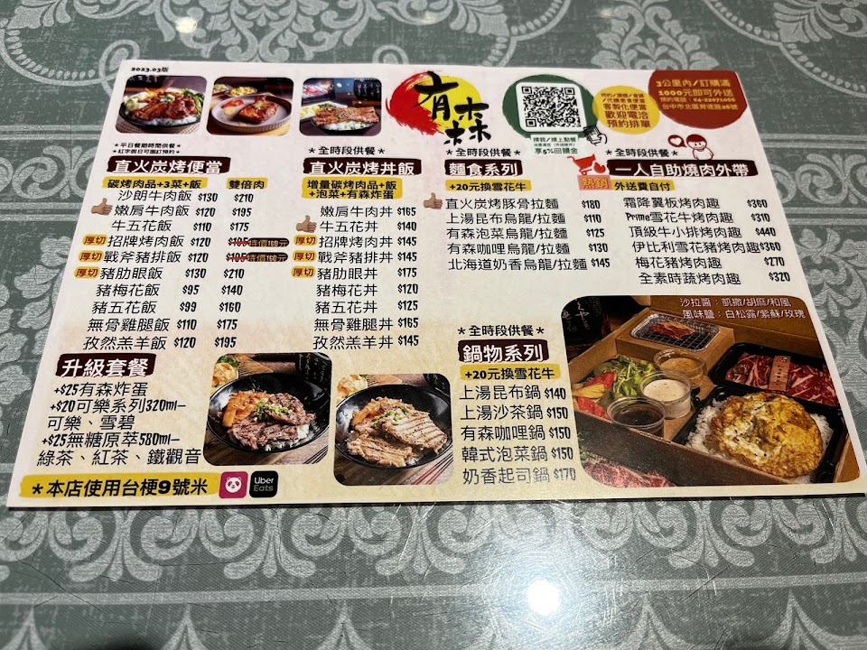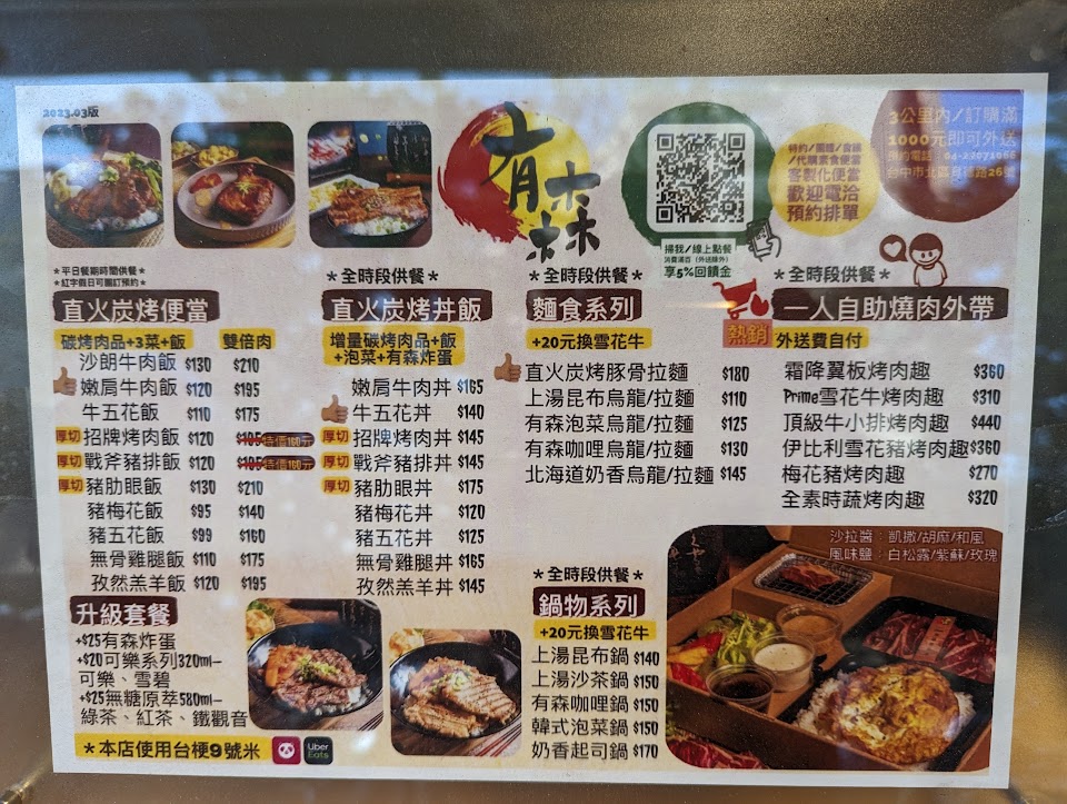 有森烤肉飯|六日訂餐請先官方line預約| 2023/3月全新菜單