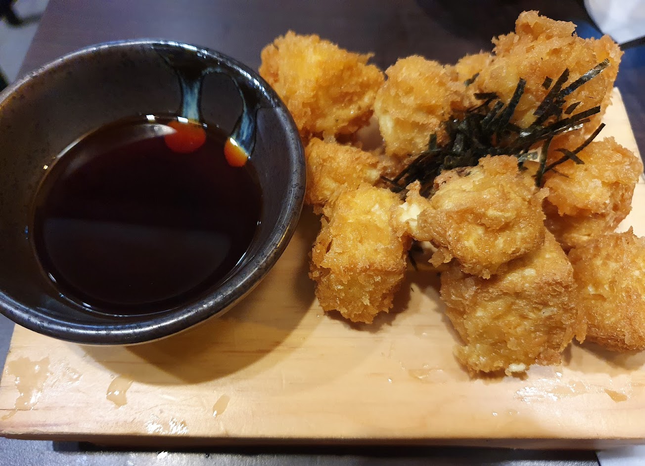 10/12日。我終於知道什麼叫虛有其表了,當初我是看到有嫩肩的牛肉,因為不想吃雪花這麼油的,結果我整個大失望,唯一好吃的只有炸豆腐、跟味增湯!!這兩味很讚;總結:肉咬不斷、烤太久加上肉質本來就太差,蔥吃起來像放太久!?很嗆又沒好聞的味道,唐揚雞還可以,但我覺得油可能也不夠新鮮,衛生紙沒了不補,跟服務生說了也一樣,過了10分鐘照樣不補也沒詢問或解釋,走了連再見都沒有,然後還能看到客人還是一直有進來我也是納悶
