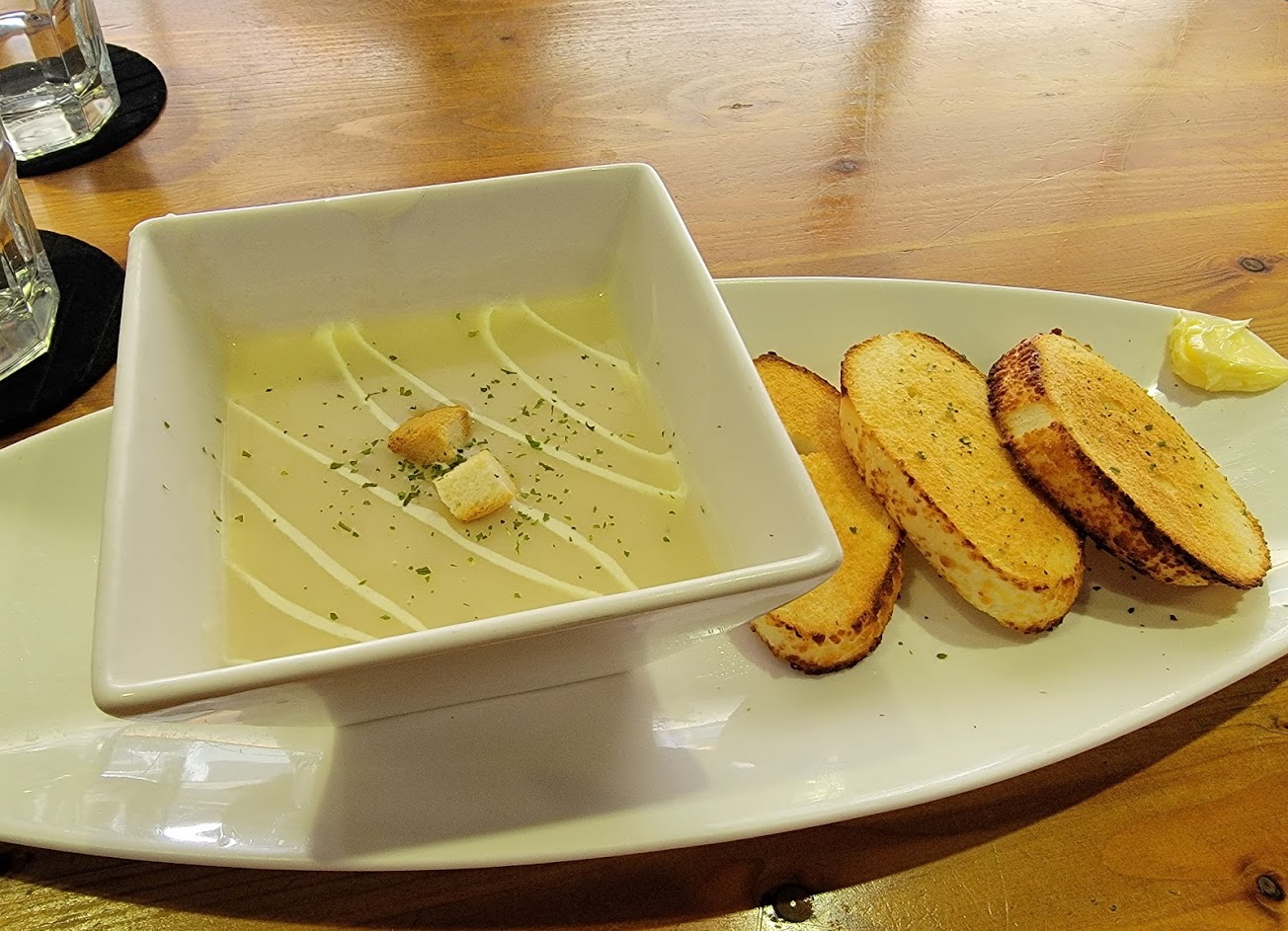 我們享用了霸王海陸羅宋-牛肉是做七分熟,一整盤多上桌真讓人口水直流?裡面有生菜沙拉還有濃湯以及好吃的法式麵包,真是豐富又多重的享受。