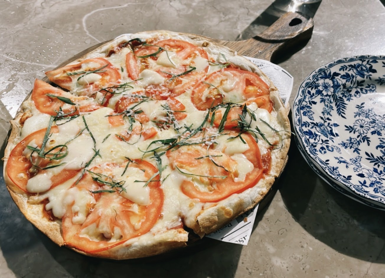 瑪格披薩帶有濃郁的起司與九層塔香,餅皮薄脆,烤過焦的部分建議剝掉,吃過一口太苦了? 覺得披薩吃久味道太單調的話也可以搭配濃湯或義大利麵的醬汁,帶出新的層次,非常建議搭配橘醬醬汁~