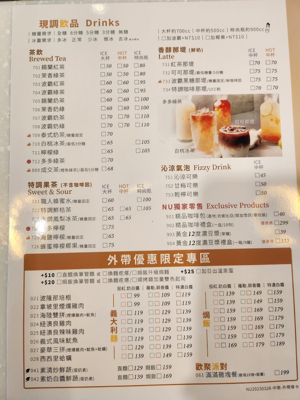 2024最新在地推薦餐廳的菜單_NU PASTA 台中微笑店(內用最後點餐時間是21:00,21:00-22:00可做外帶)情侶約會|包廂租借|下午茶|台中美食|外帶優惠|義大利麵|網美景點的菜單、圖片