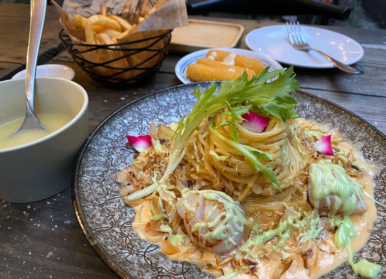生食級的干貝半熟風味超好吃,義大利麵搭配超級加分。一定要訂位,不然現場要排很久(大概保留兩到三桌給現場客)