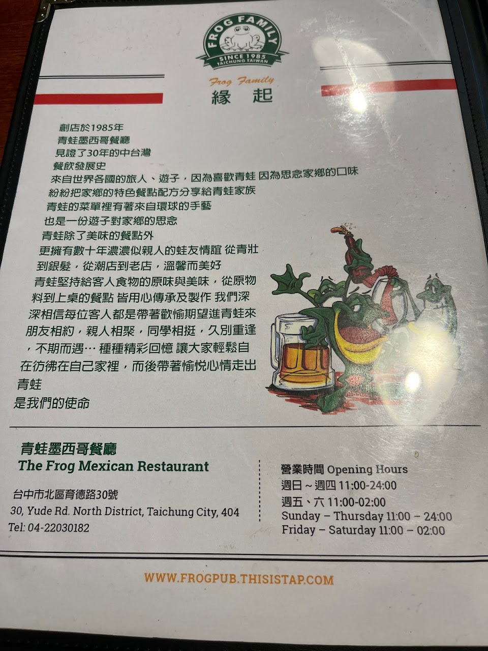 2024最新在地推薦餐廳的菜單_青蛙墨西哥餐廳The Frog Mexican Restaurant的菜單、圖片