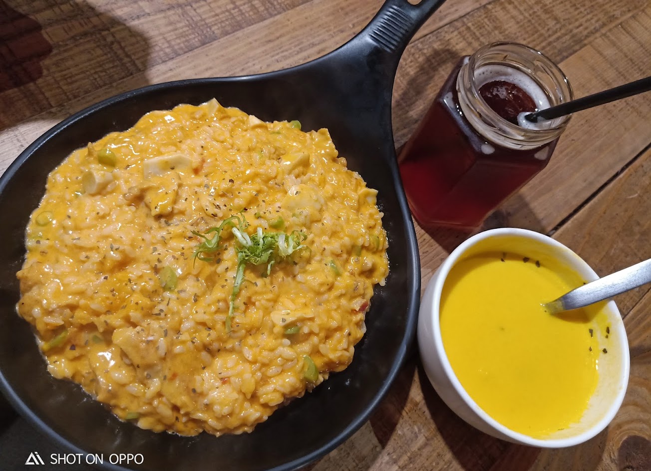 朋友點的燉飯,認真覺得外觀很像粥(濕度根本爆表=-=)接受度就 因人而異(如果問我的話….我會直接把它推給我朋友吃 ?