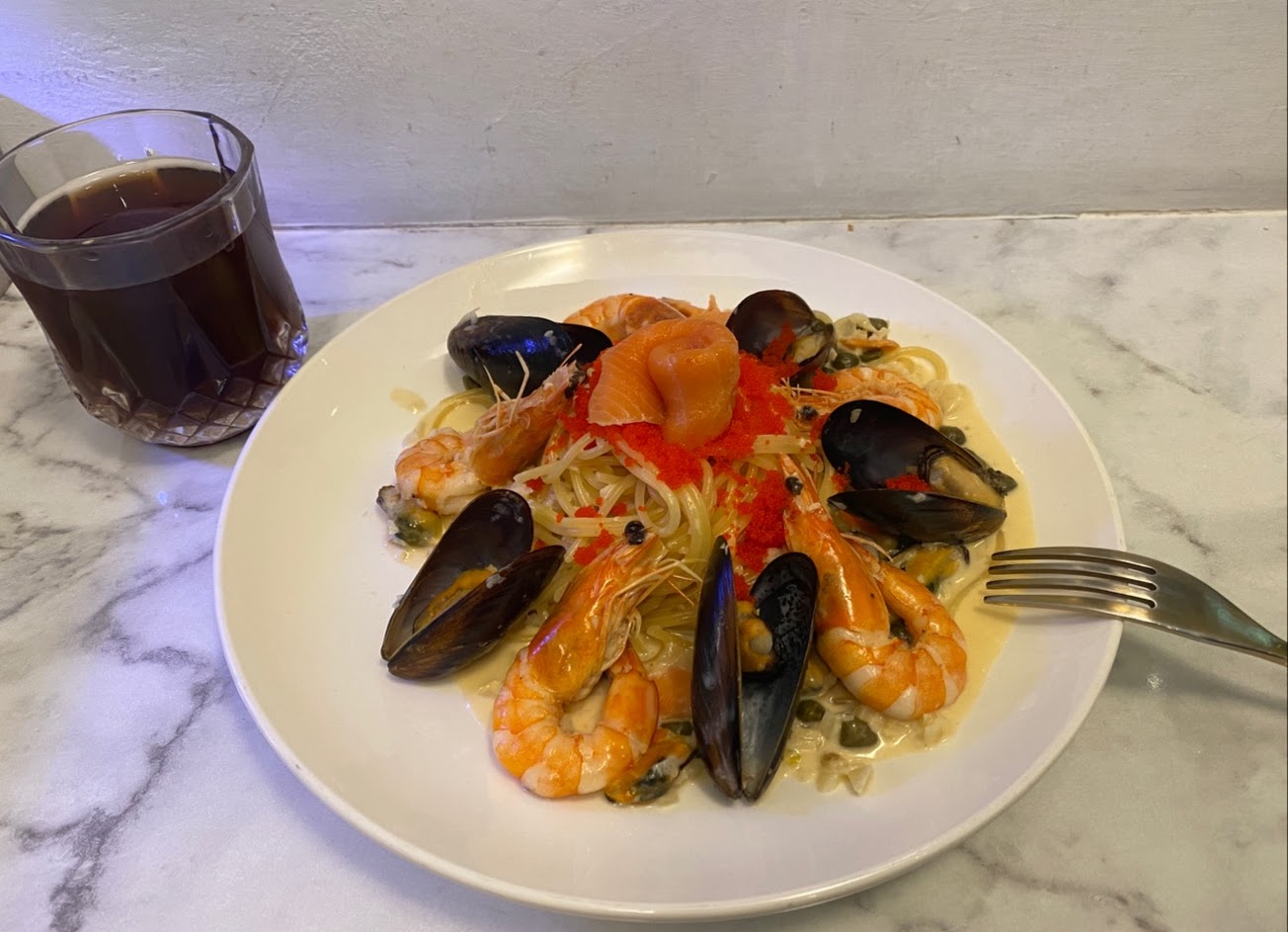 1.麵的Q度外帶後也不會影響太多 老闆有小心注意⚠️ 2.白醬的香濃度就是歐洲的口味 不是勾芡台味那種的 真的很難得 3.海鮮誠意十足 我最愛的是閨女裝? 都帶著滿滿的海鮮愛下肚嘍!