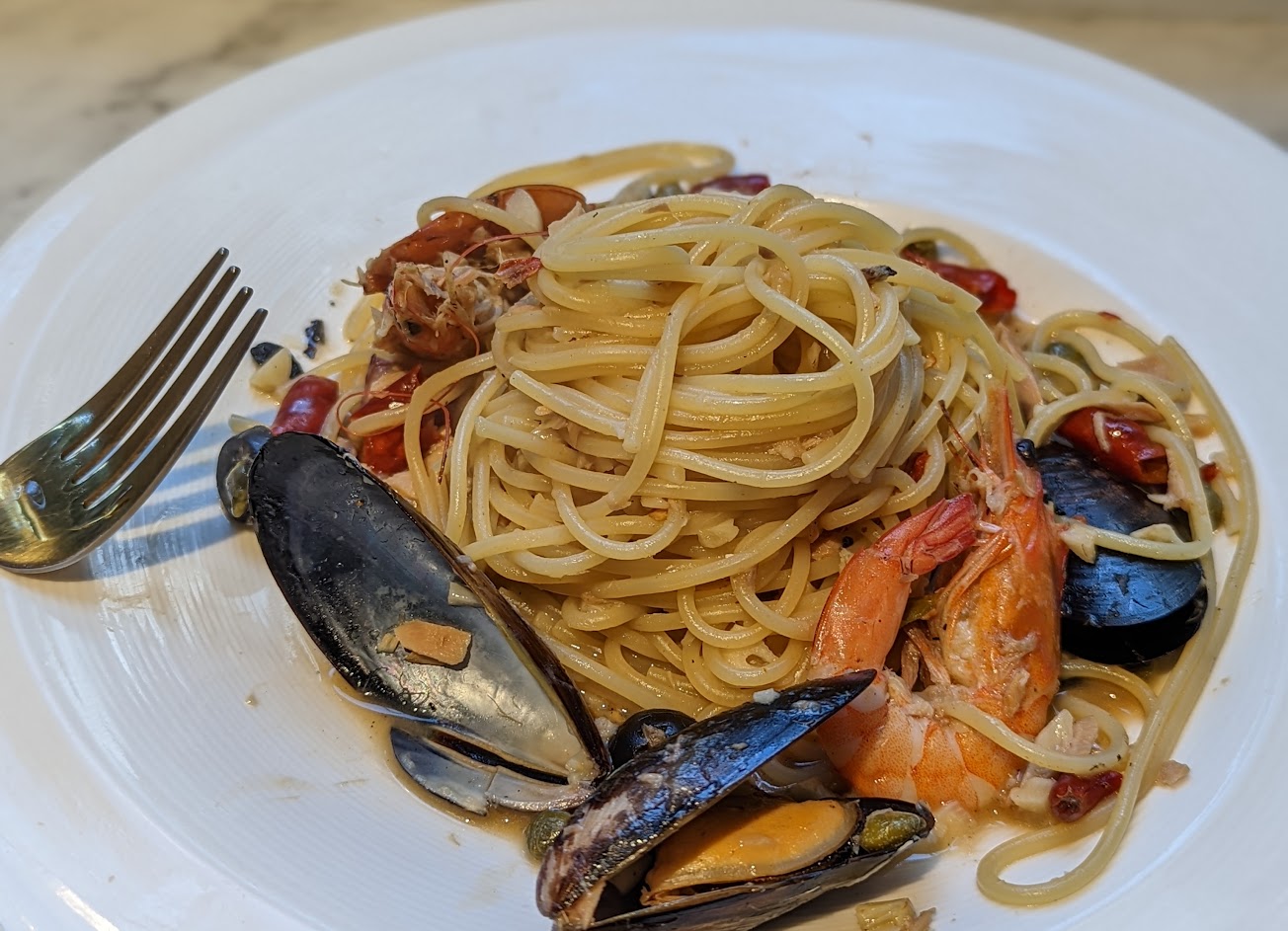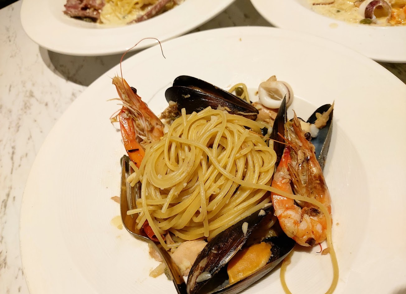 奶油不會太膩 麵的嚼度也很完美 海鮮也很新鮮