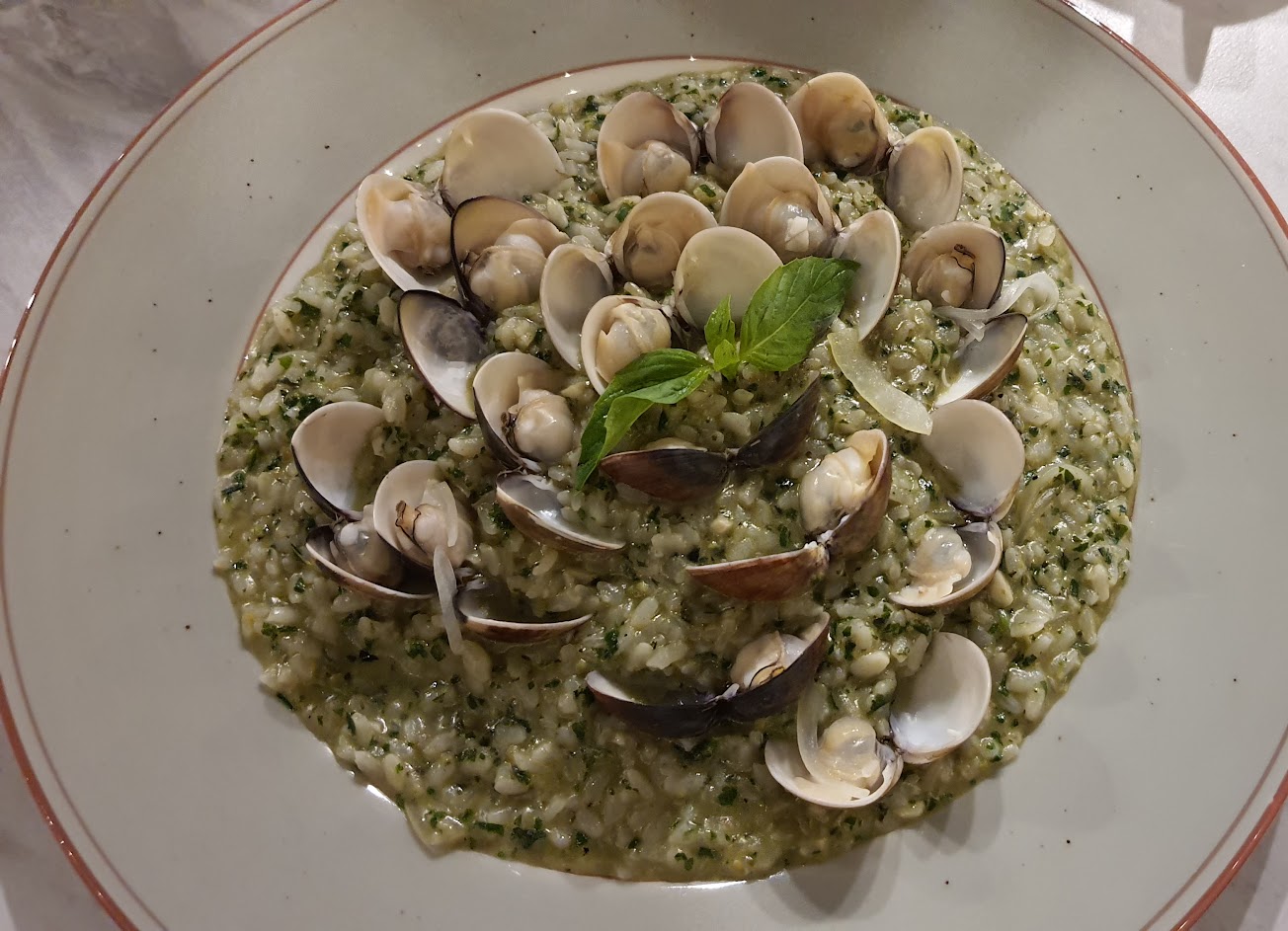 今天點松露奶油蘑菇菲力牛排燉飯和青醬蛤蜊意大利麵。青醬非常夠味,一端上桌就聞到濃濃香氣,且蛤蜊份量十足。牛排燉飯更沒話說,非常獨特的口味且好吃,老婆讚不絕口。