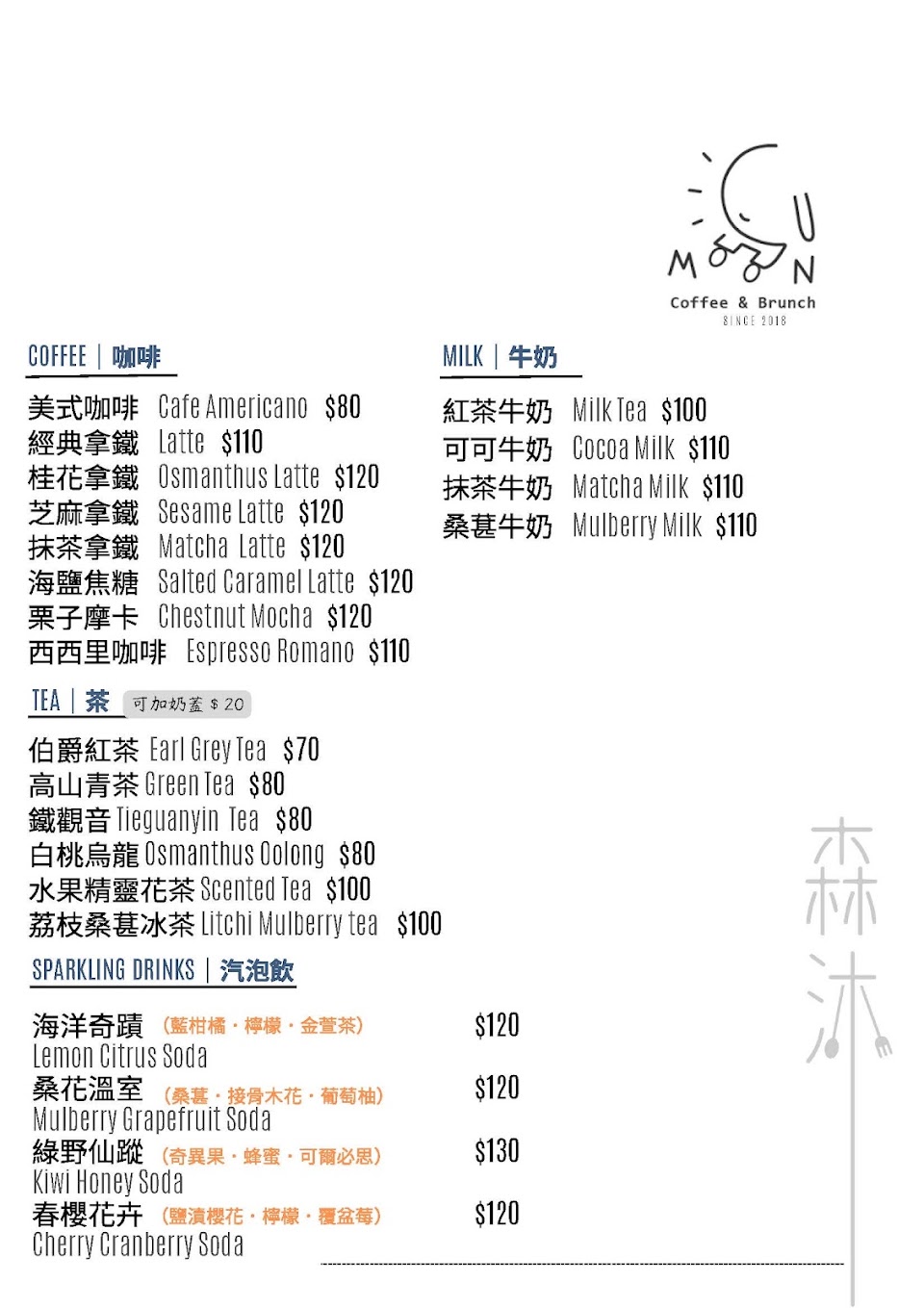 2024最新在地推薦餐廳的菜單_森沐Sun Moon的菜單、圖片