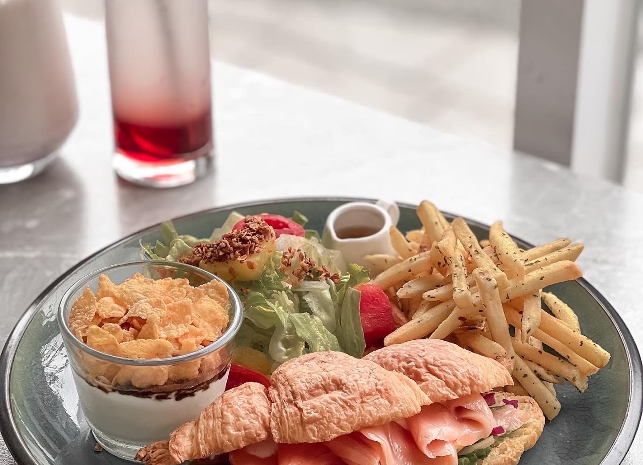 鮭魚可頌味道也不錯 柚子塔塔醬中和膩感
