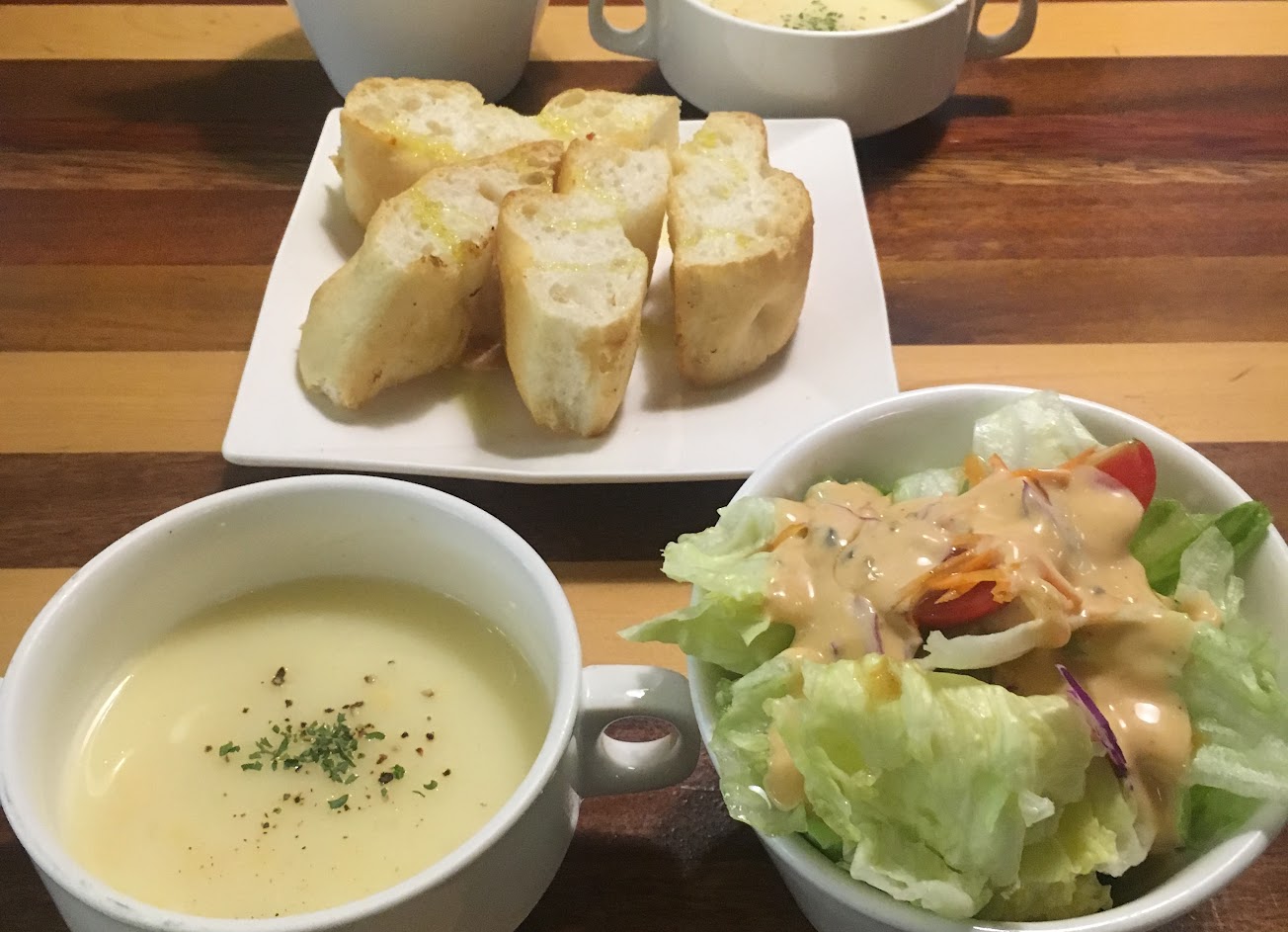 附餐飲料紅茶茶味濃,沙拉普通,濃湯好喝