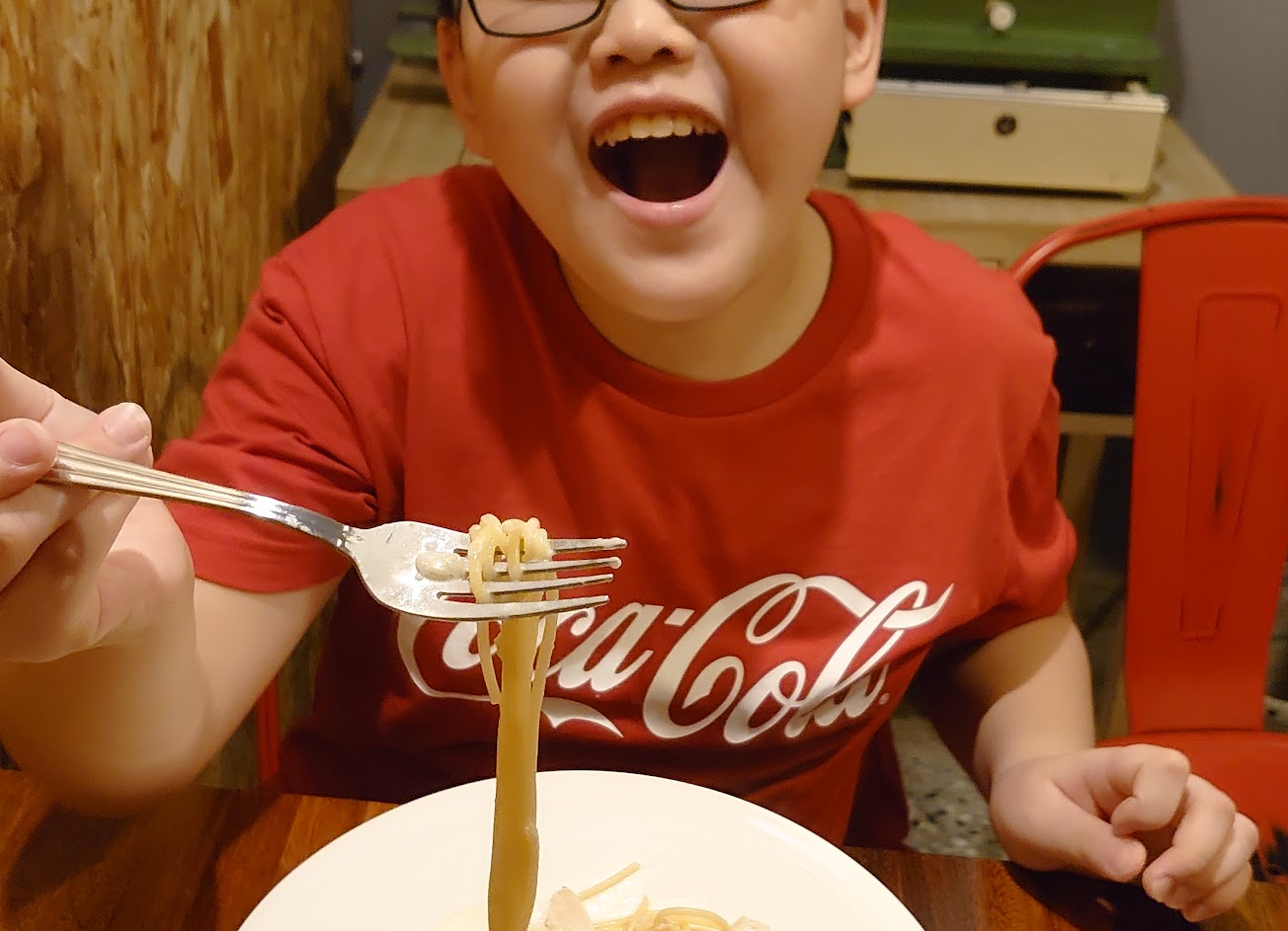 沒什麼人,上餐還超慢,最後一個人上菜前面兩個已經吃完了 玉米濃湯內出現義大利麵說是不小心掉下去的? 義大利麵跟吃乾麵一樣醬直接捨不得放